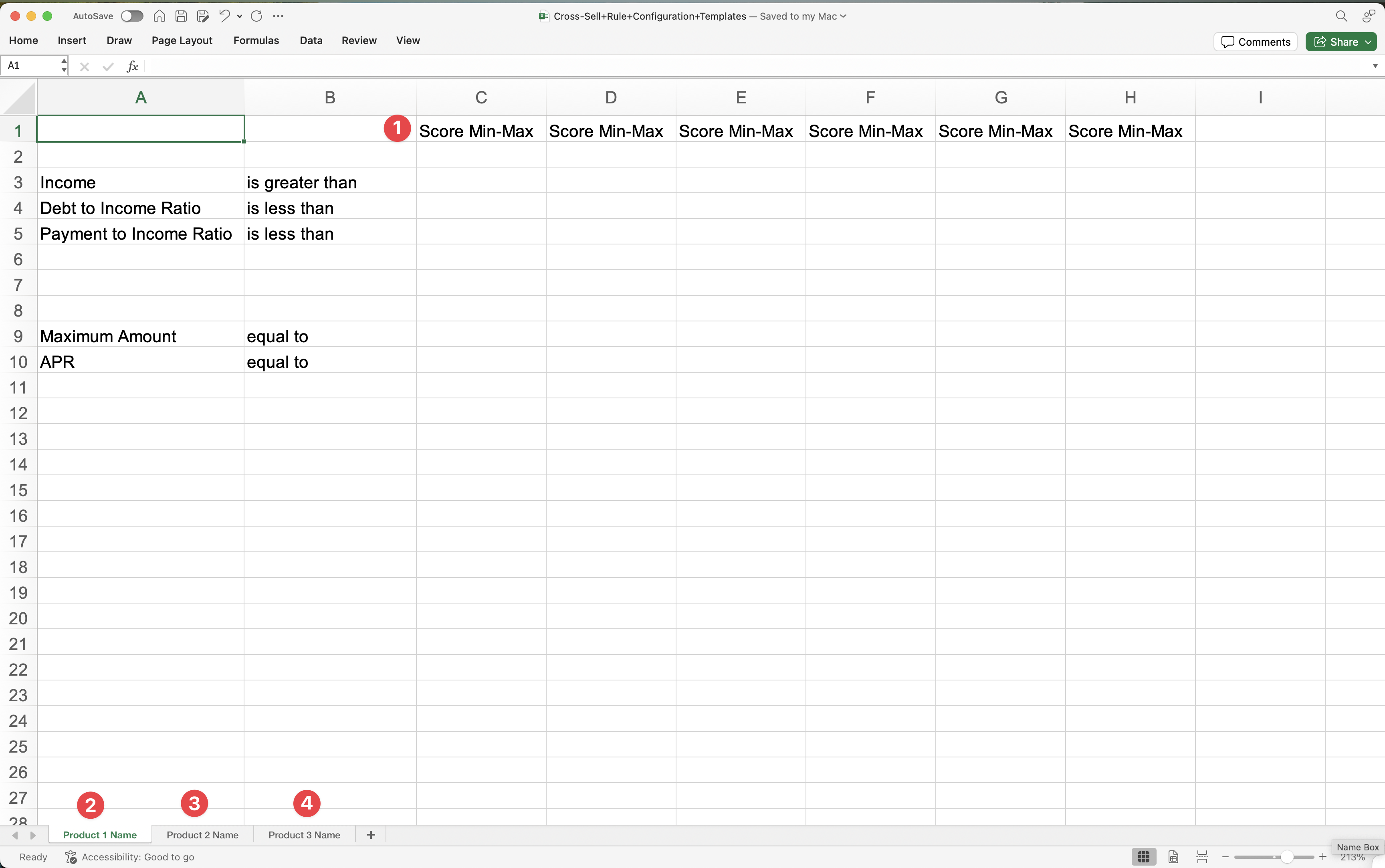 Update the tiers (1) to the ones your credit union uses. Then, replace (2) (3) and (4) with the product names that were set up in the Glide dashboard. The tier ranges and product names must match what is shown on the Lending tab in the Glide dashboard.