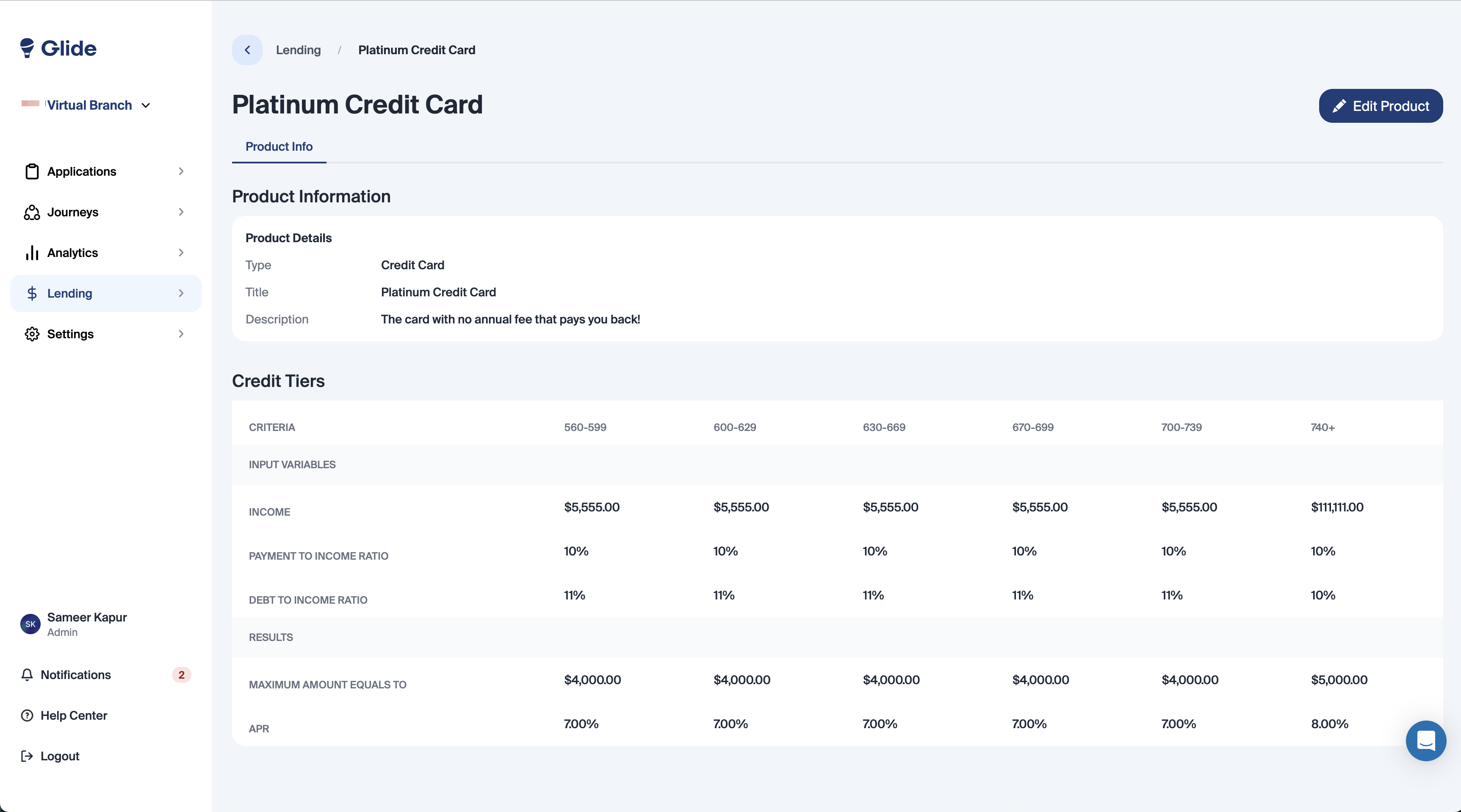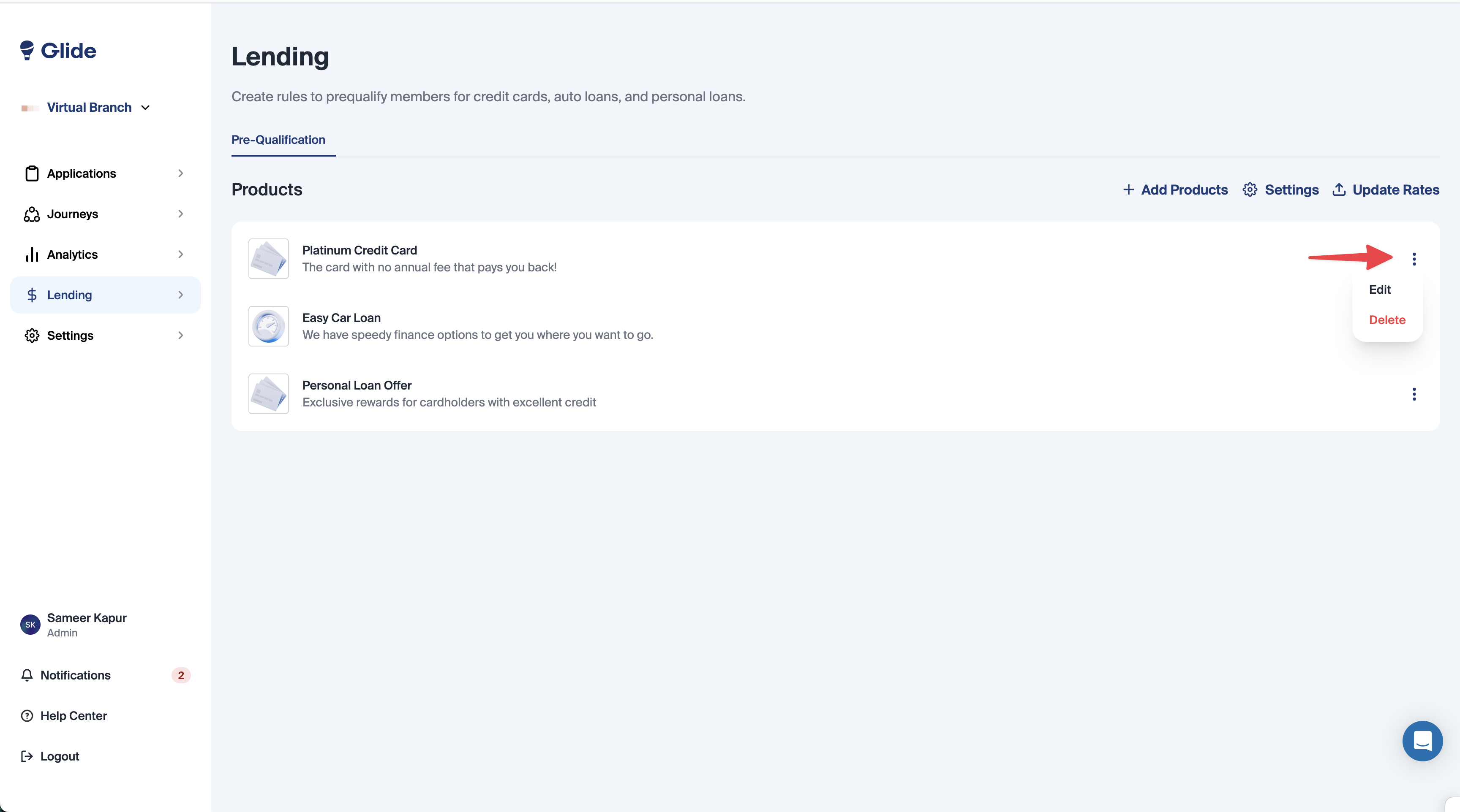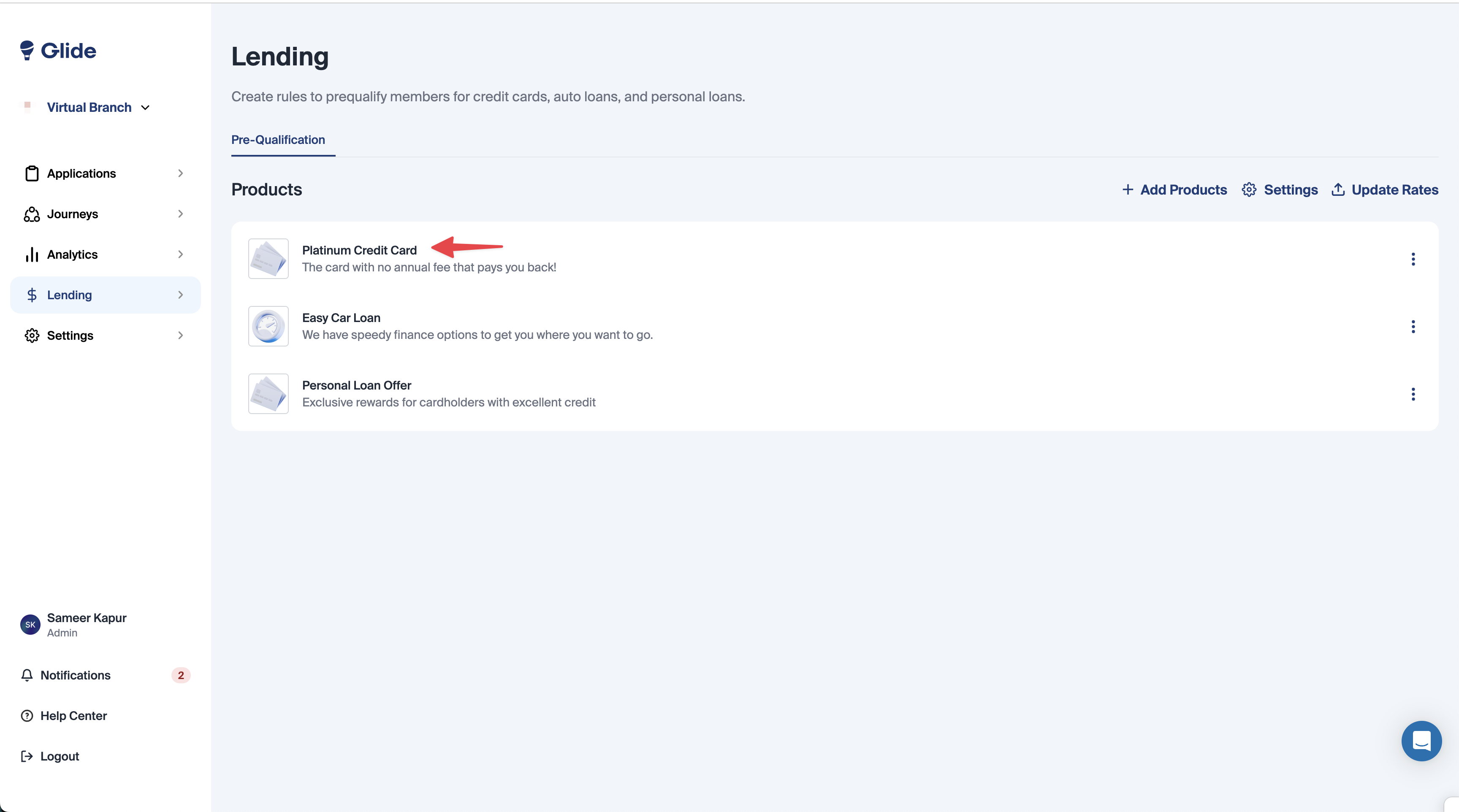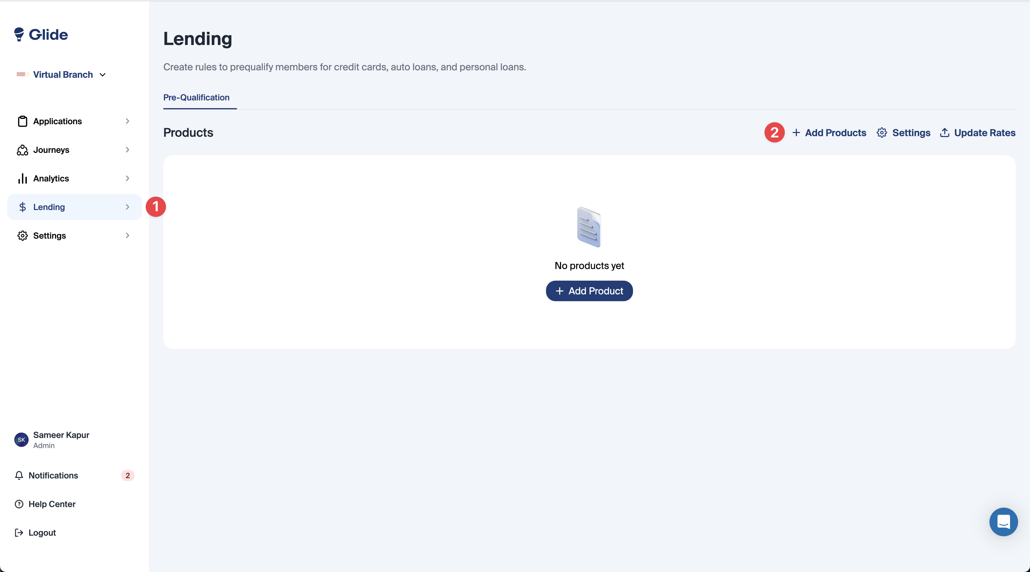 In this guide, you'll learn how to add and update lending products and rates on Glide's staff dashboard.