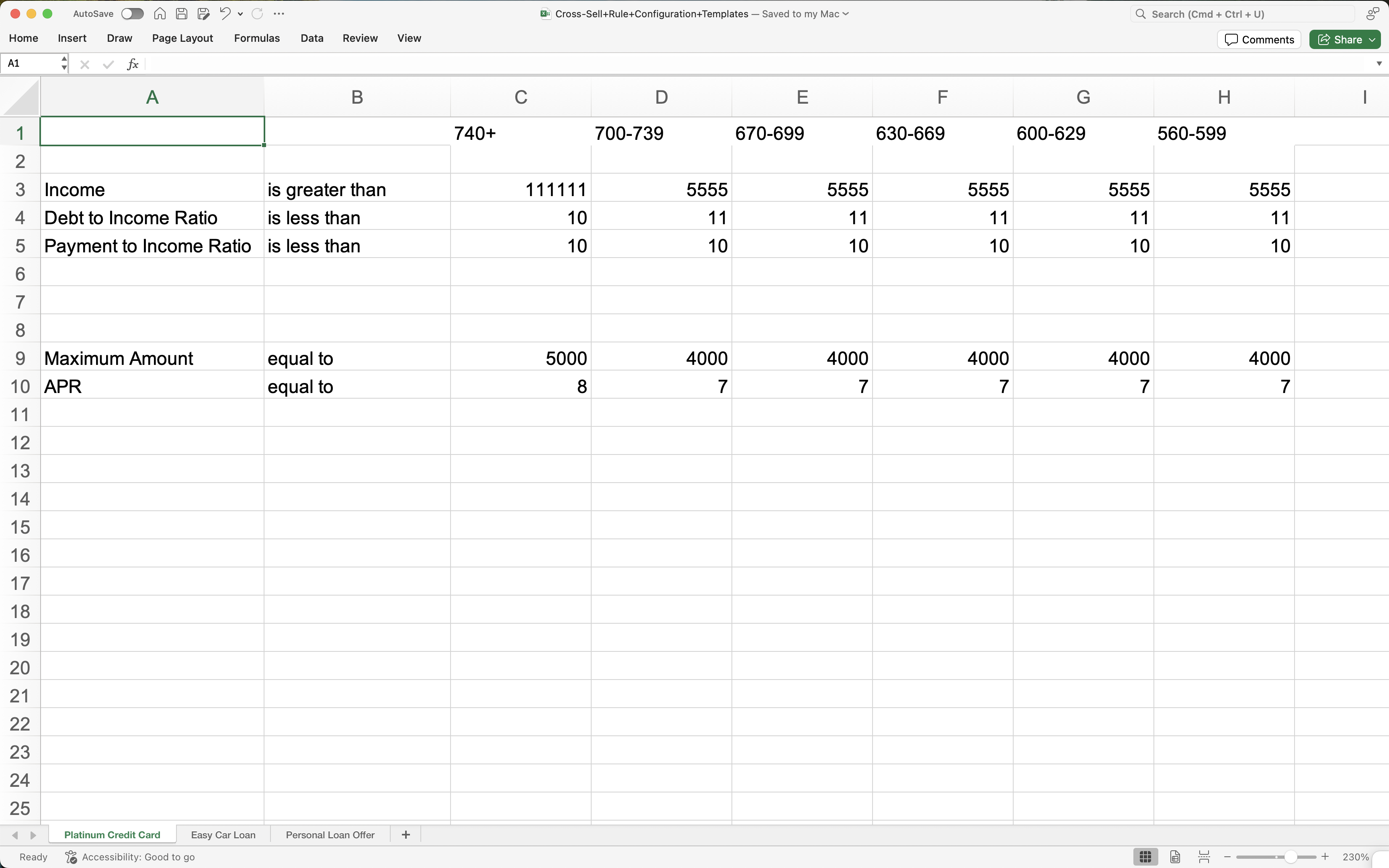 Here's how a completed rate sheet may look like. It is now ready to be uploaded to the Glide dashboard.