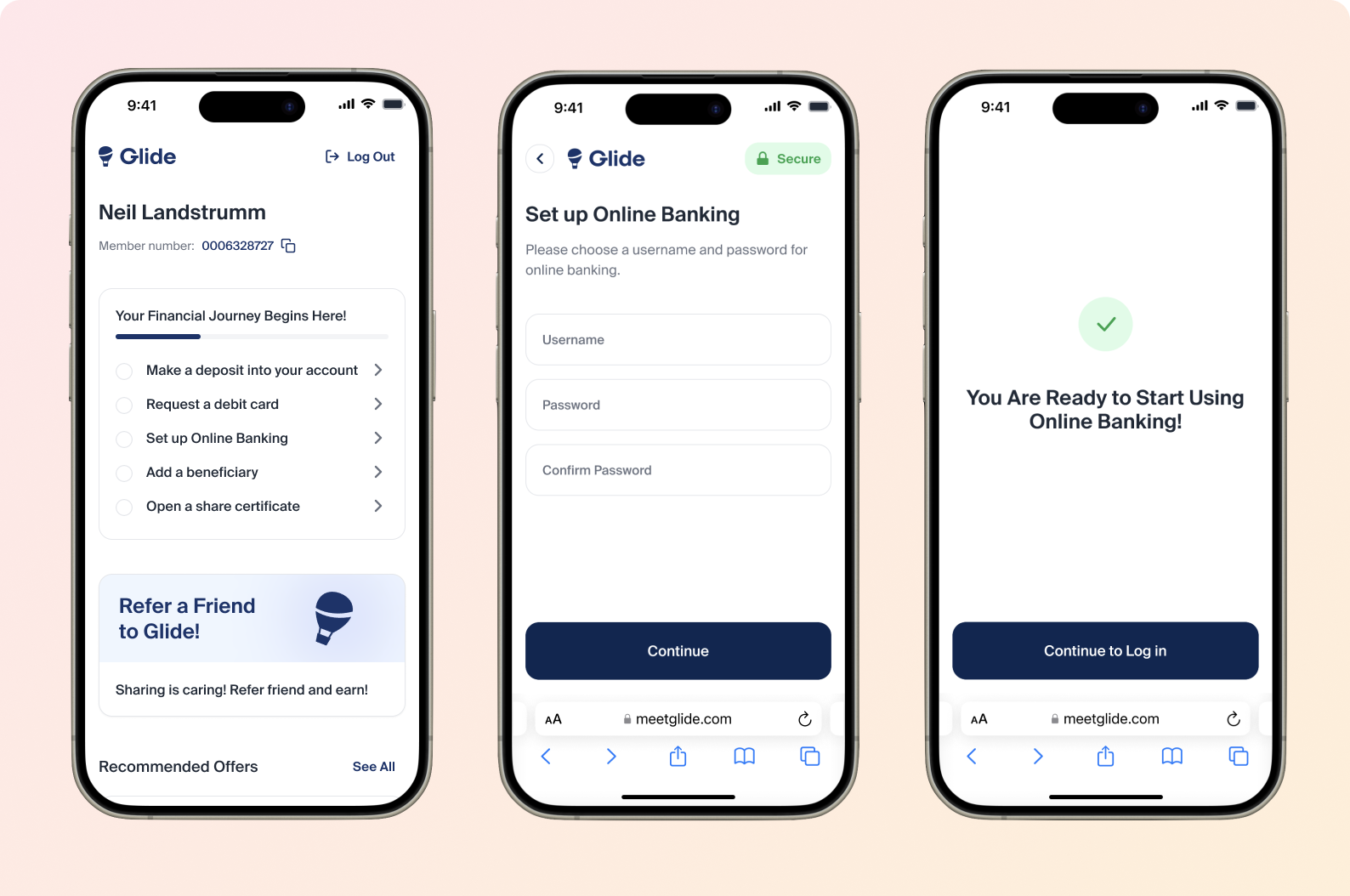 Once your FI has sent this information to Glide, Glide will configure the staging environment to add the new "Set up Online Banking" page in the member flow.