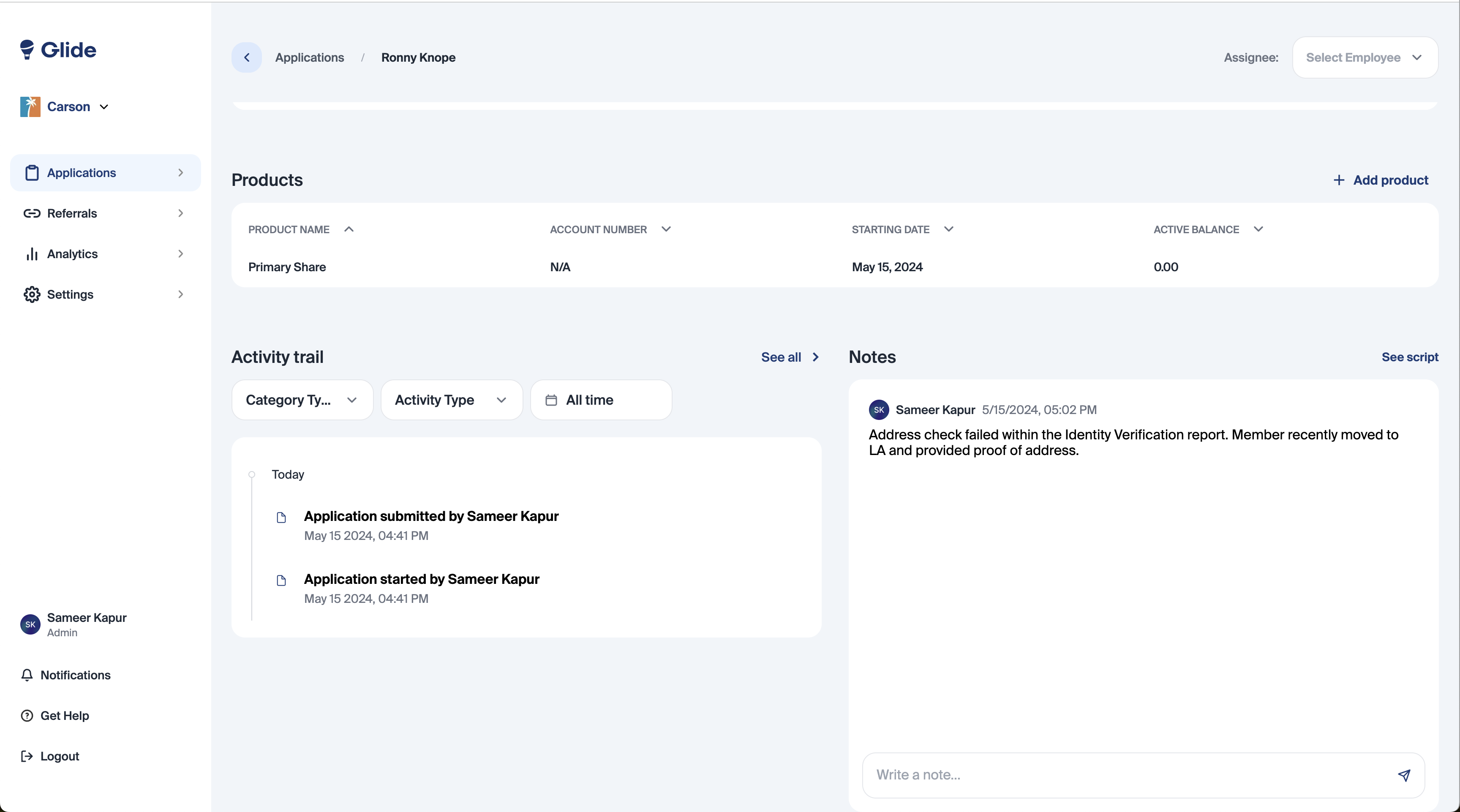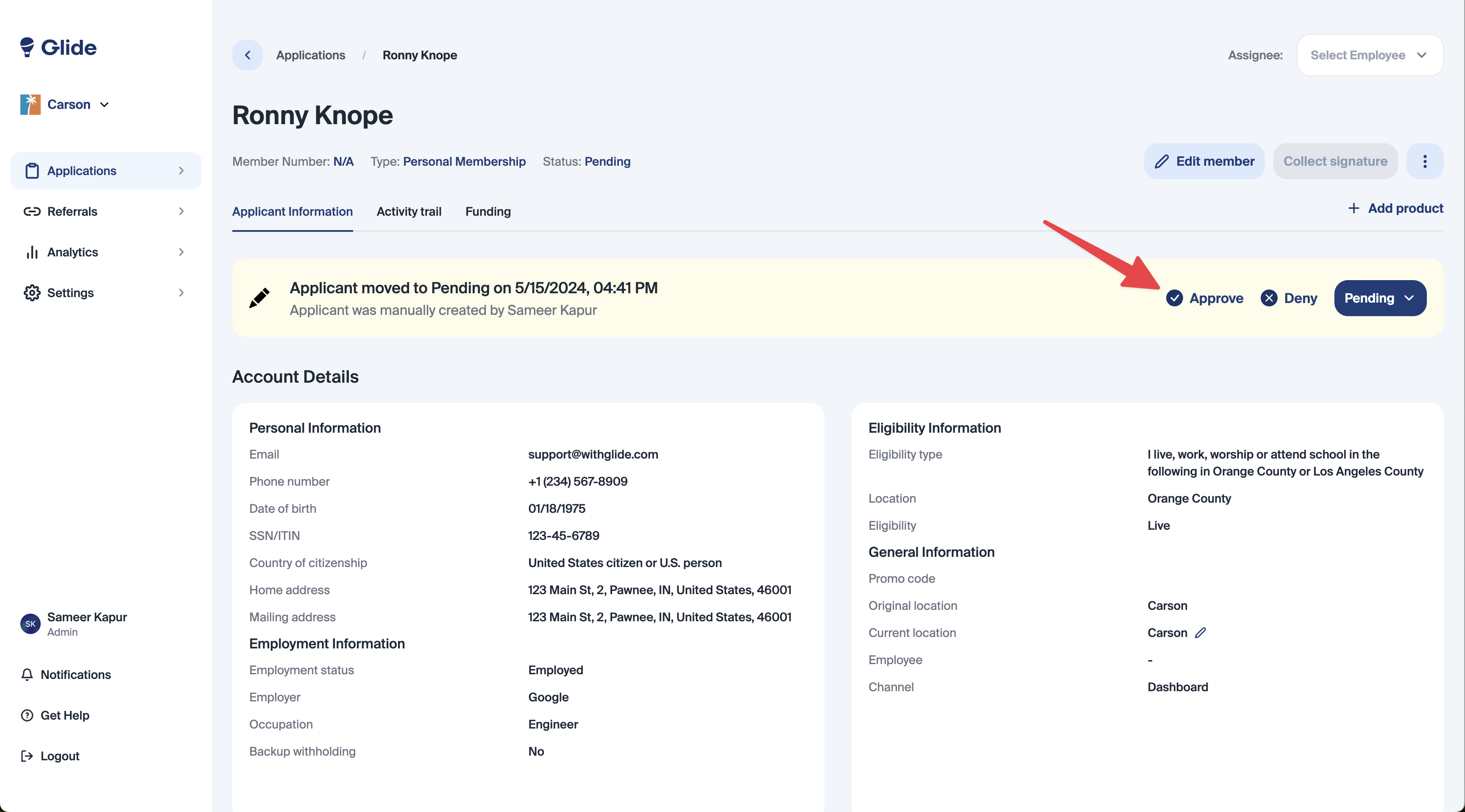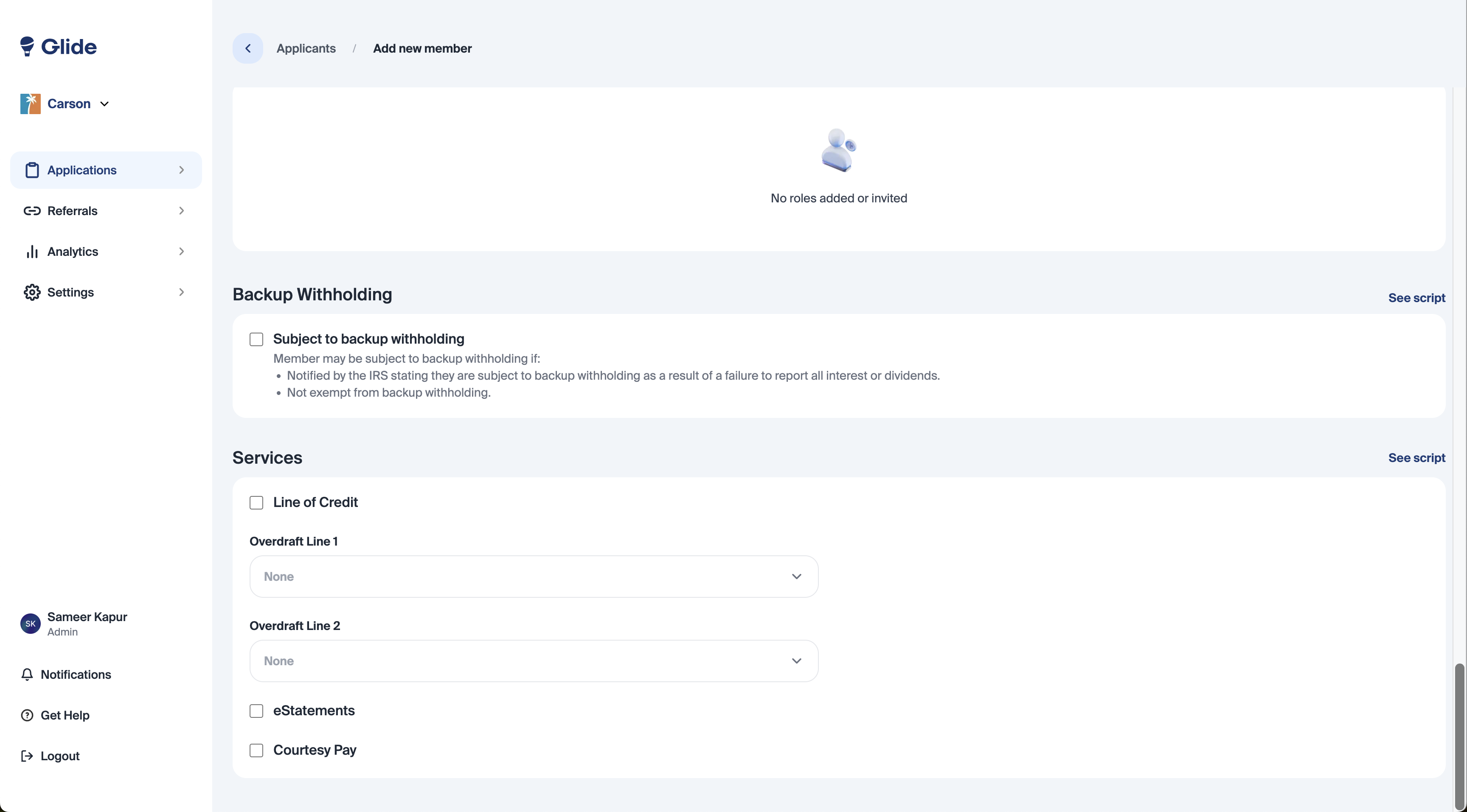 Start by clicking the “+Add Member” button on the top right of the applications page.