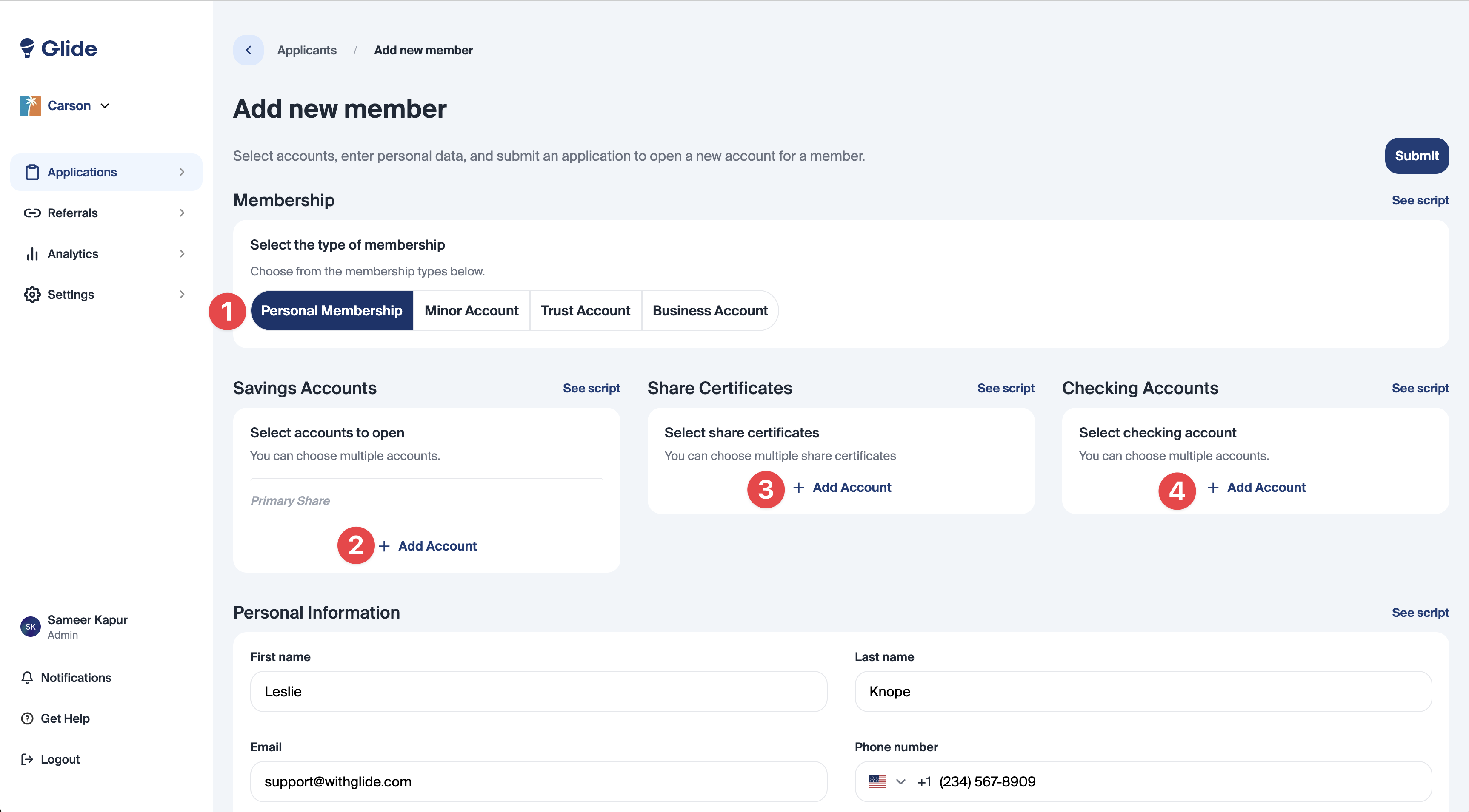 Then, select the Savings Accounts (2), Share Certificates (3), or Checking Accounts (4) you’d like to open.