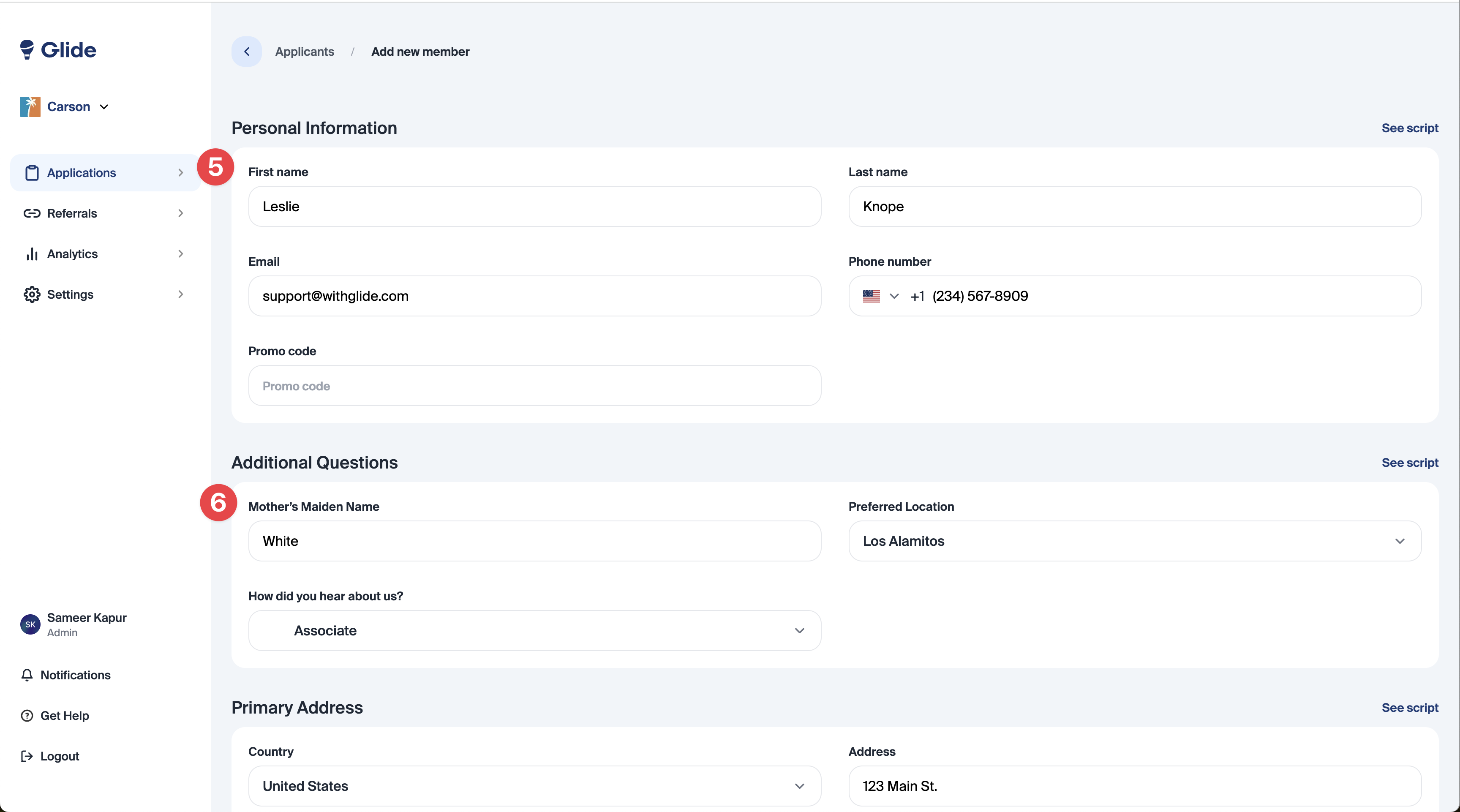 In the Personal Information (5) section, enter the members First name, Last name, Email, and Phone number.