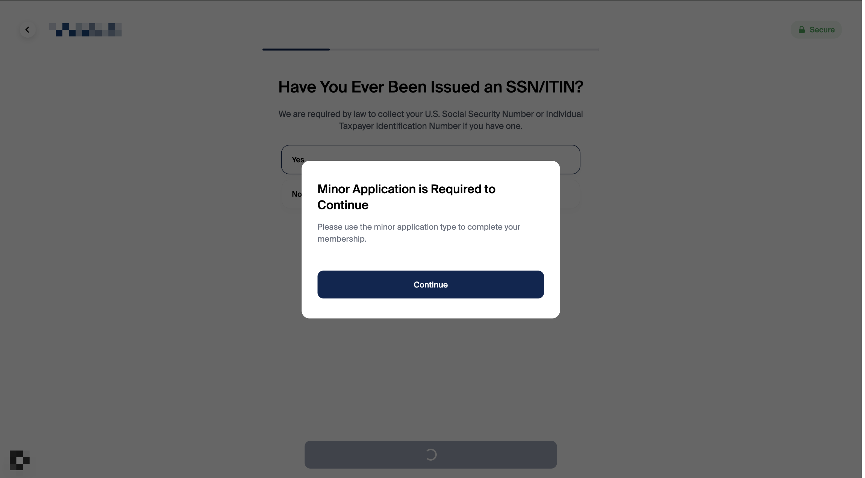If Glide detects the applicant is under 18, they are immediately shown the following pop-up and required to restart the application using the minor-specific membership application