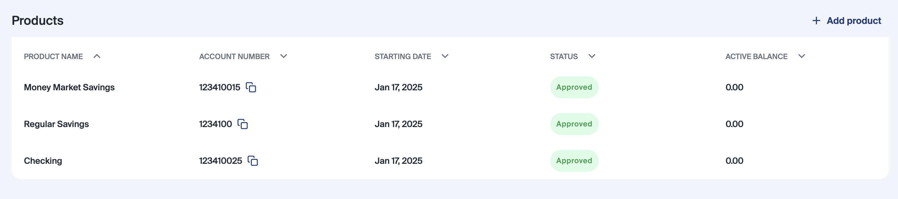 The account number field on the dashboard is shown in the Products Table. This is what staff members see when working applications.
