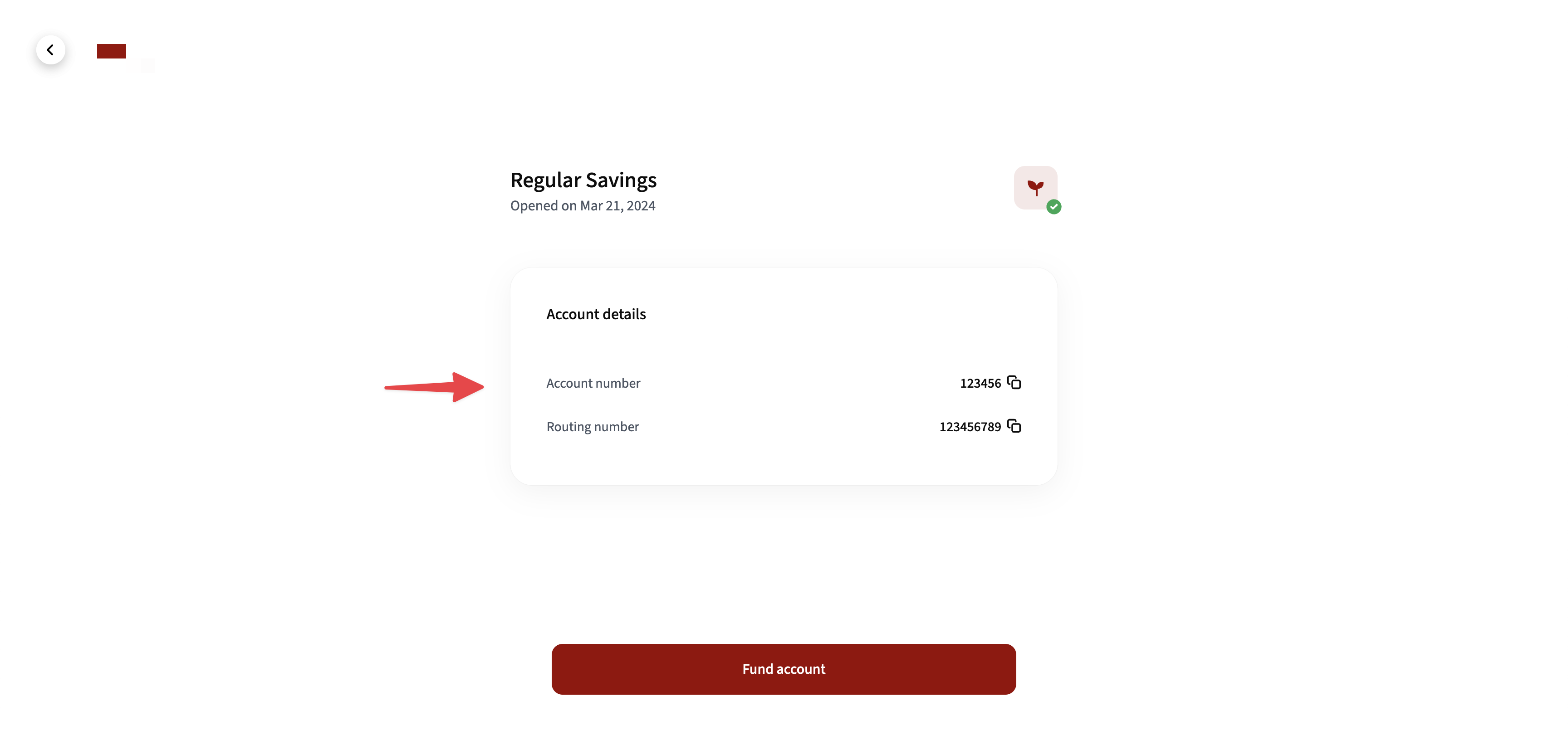 The format of the account number shown to members during the account setup and funding process.