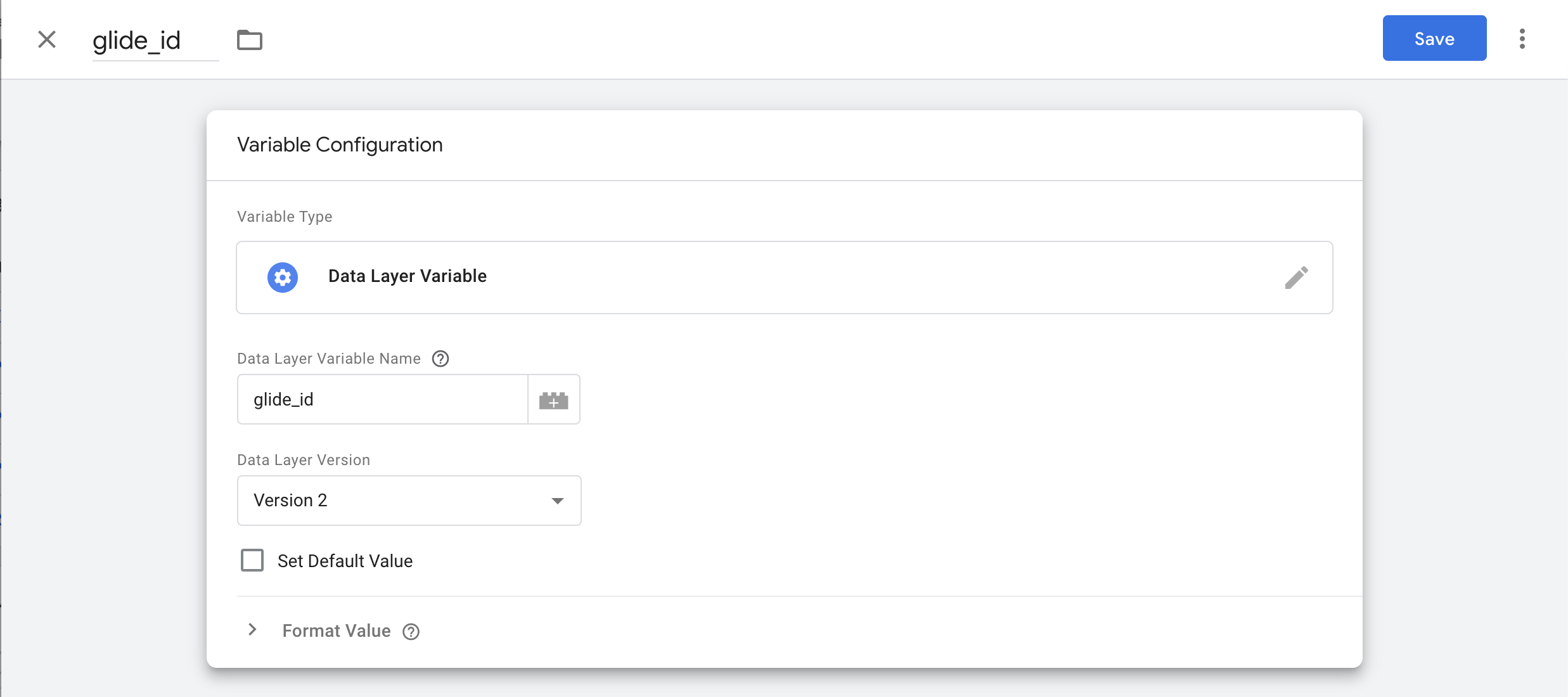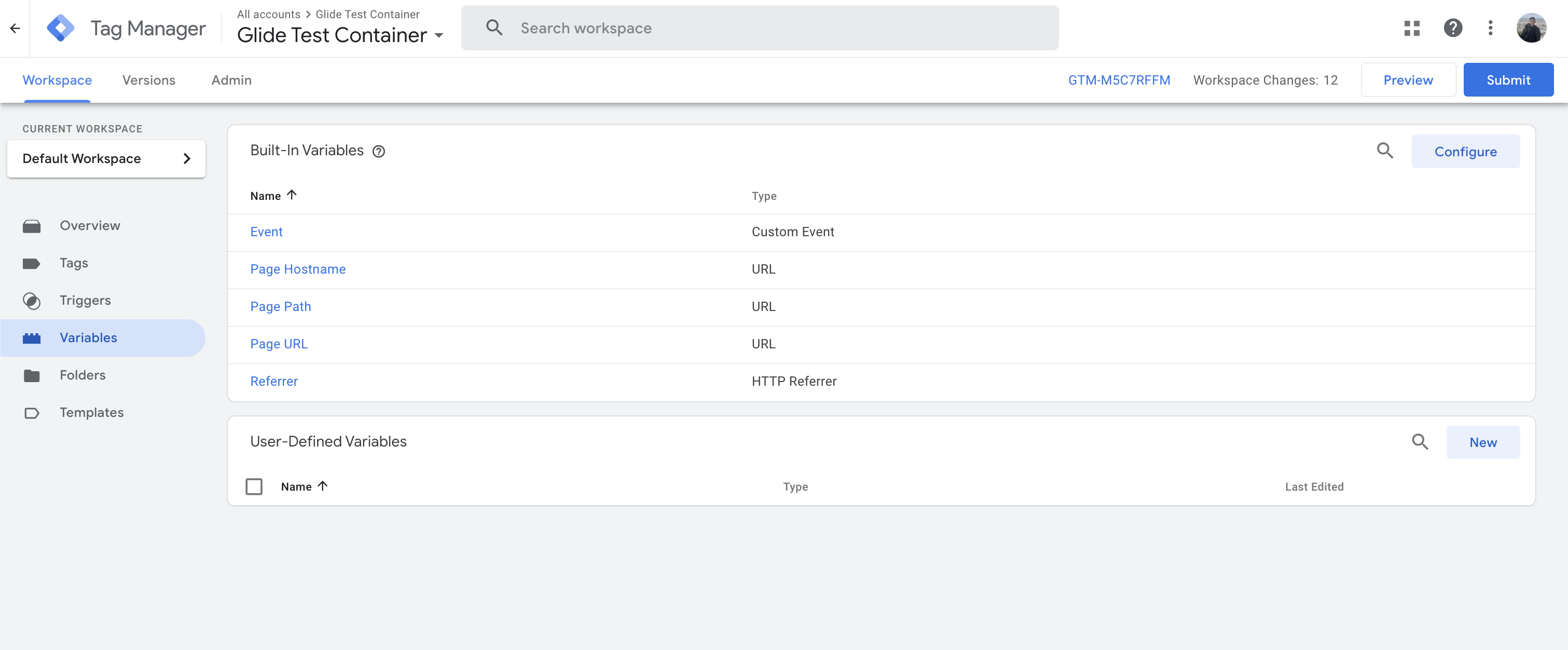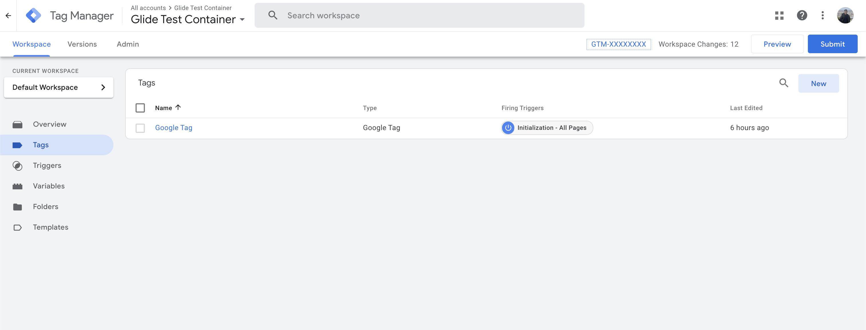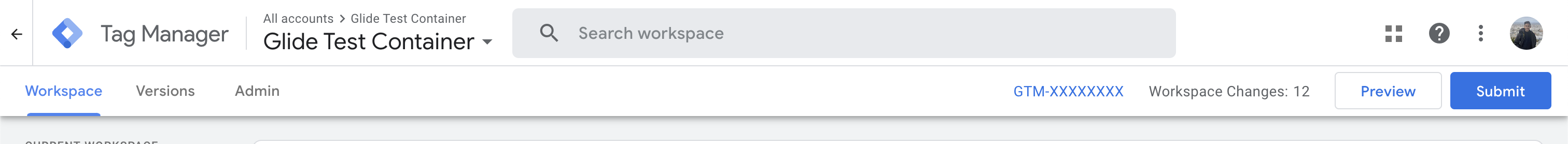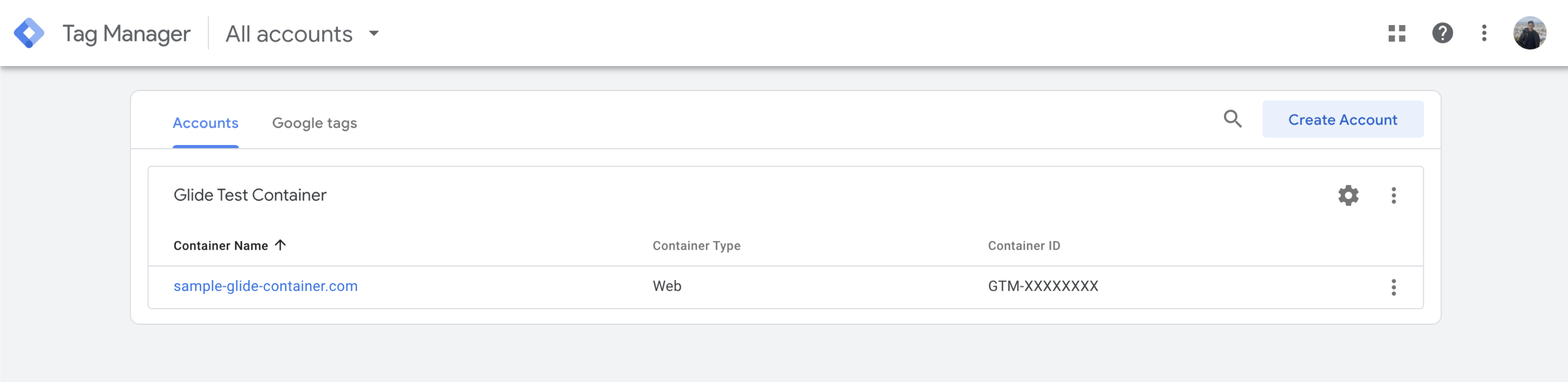 Copy your Container ID which looks like GTM-XXXXXXX and share with Glide