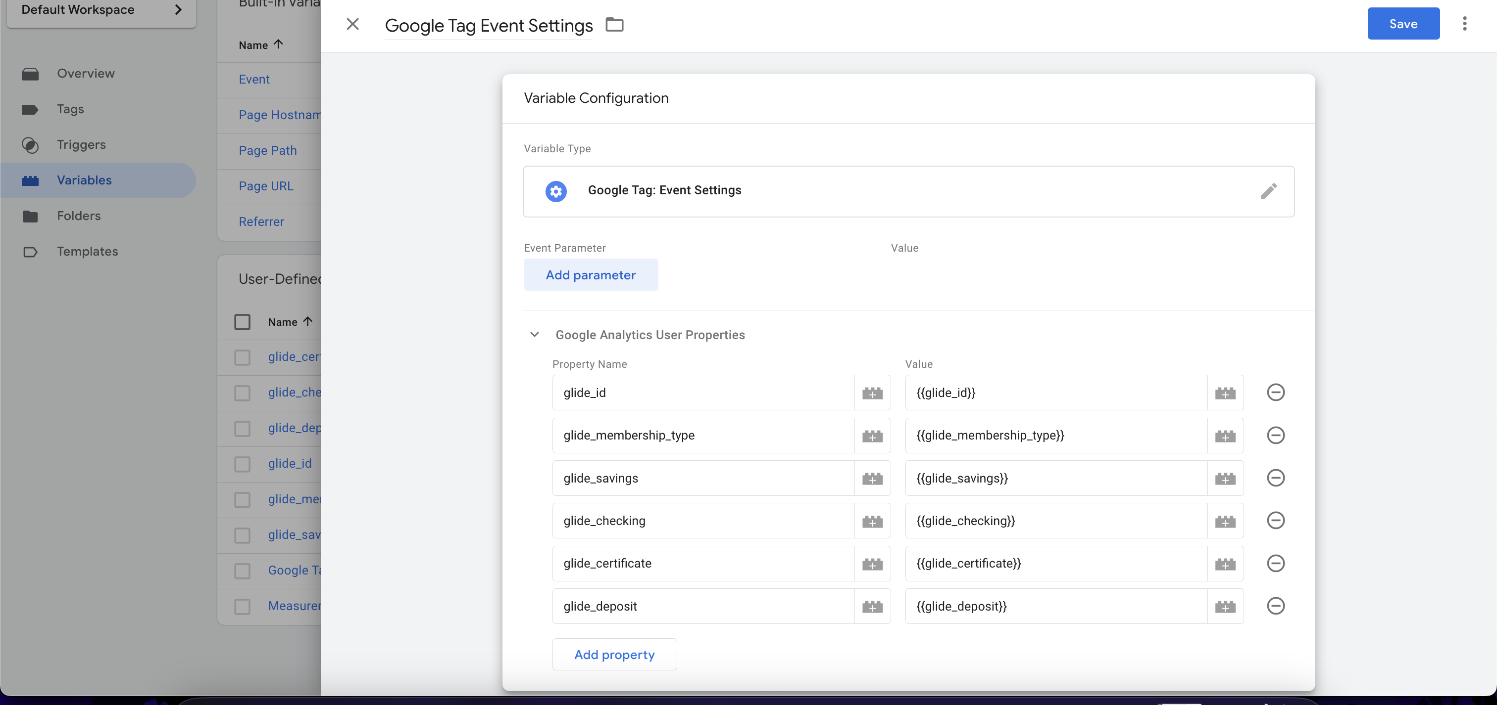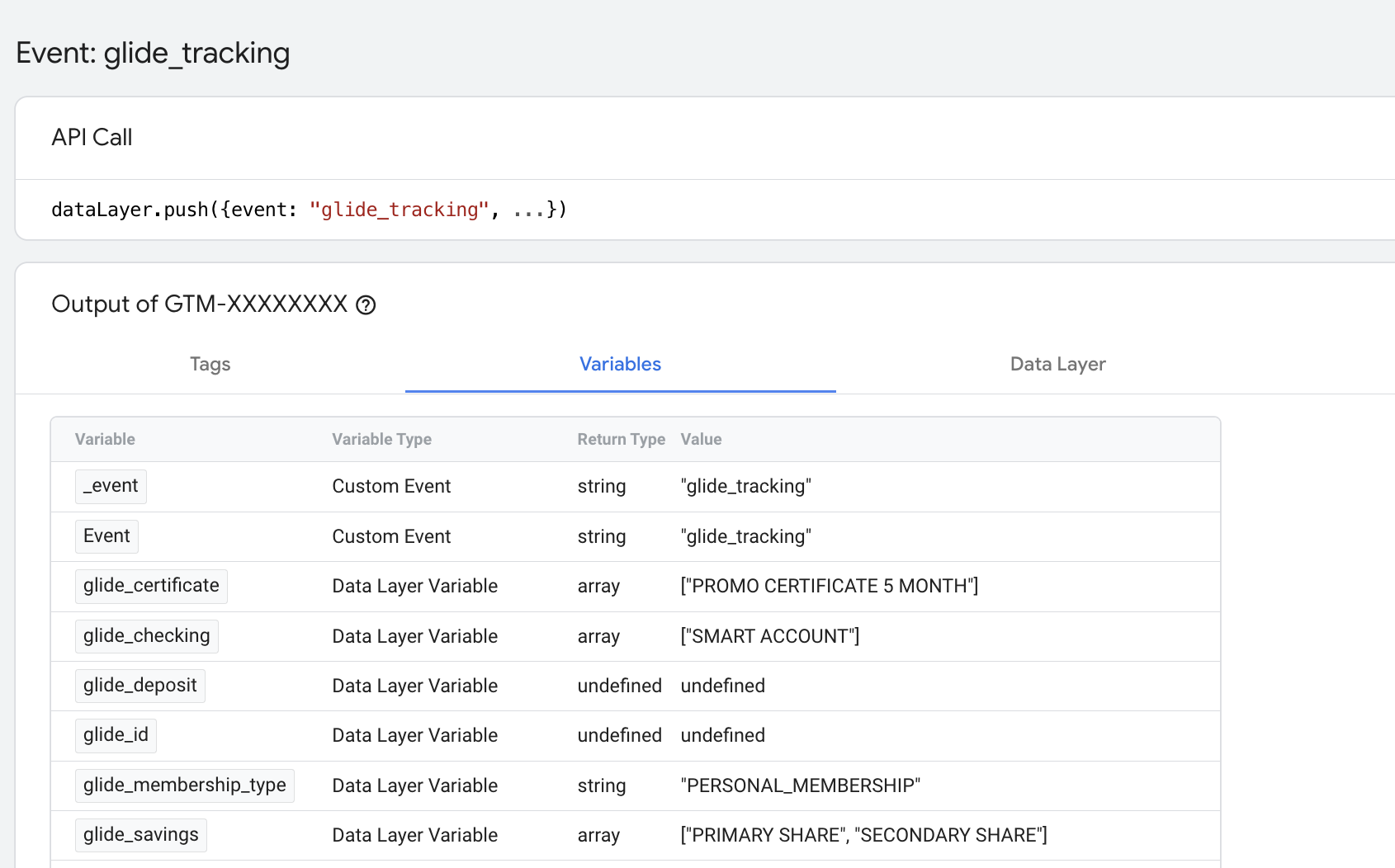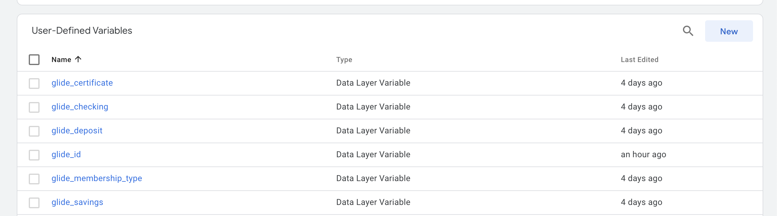 Glide uses Google Tag Manager to allow credit unions to see analytics data in GTM/GA4. Glide provides granular data on a per-user level which provides information such as user’s membership type, deposit activity, savings and others (full list provided below).