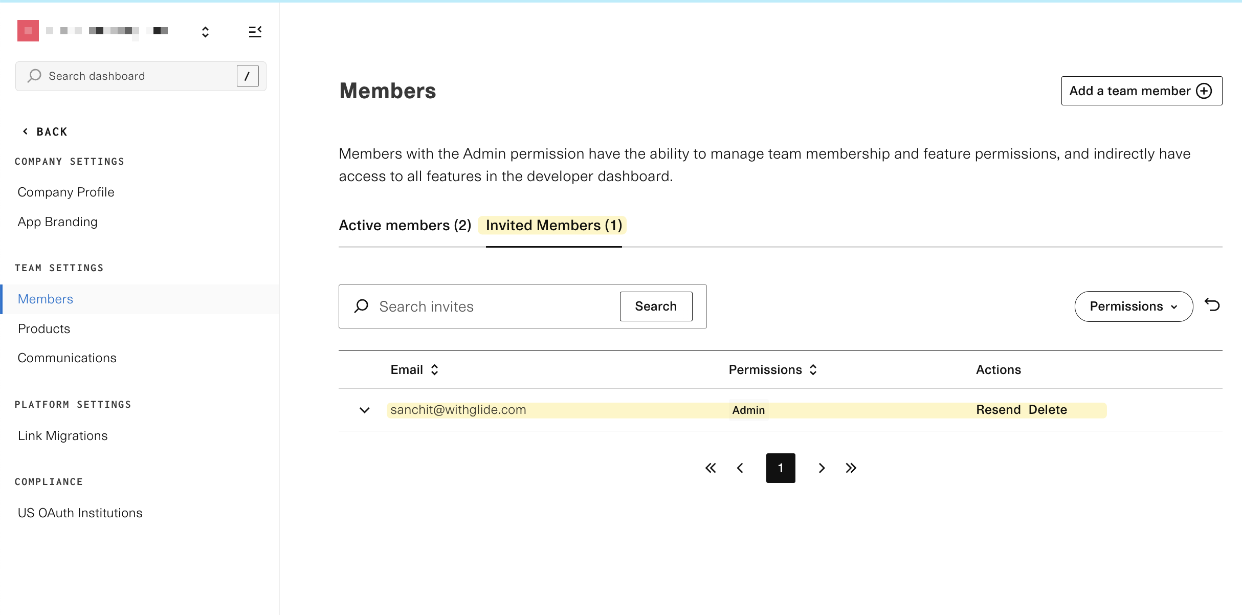 Click on Members in the navigation bar on the left. Then, click on "Add a team member+" in the top right.