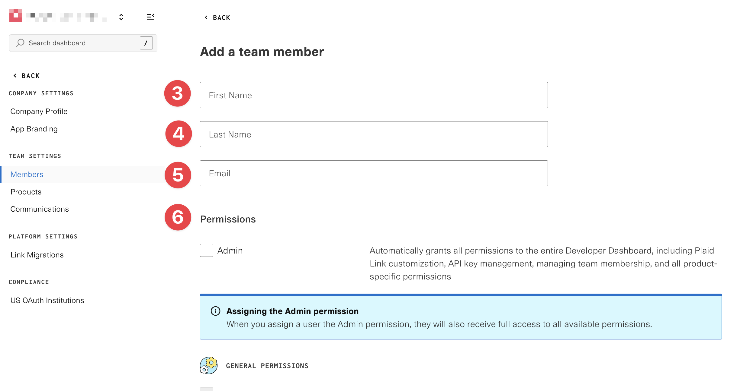 Next, enter in the first name, last name, email, and permissions of the staff member you'd like to invite.
