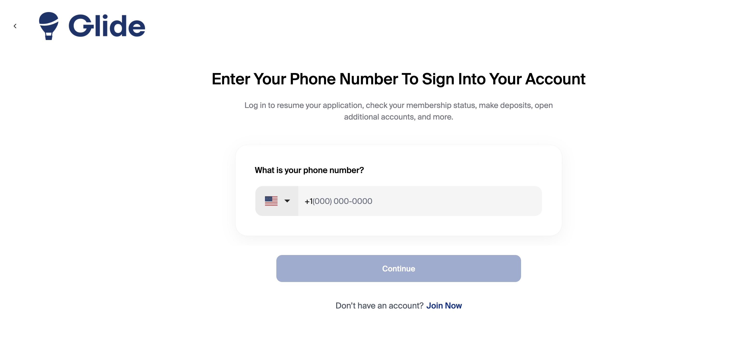 Members—whether they originally joined through Glide or prior to its implementation—can log in at any time to access their account onboarding page. From this page, they can view account details, open new shares, and access additional features, depending on your credit union’s configuration.