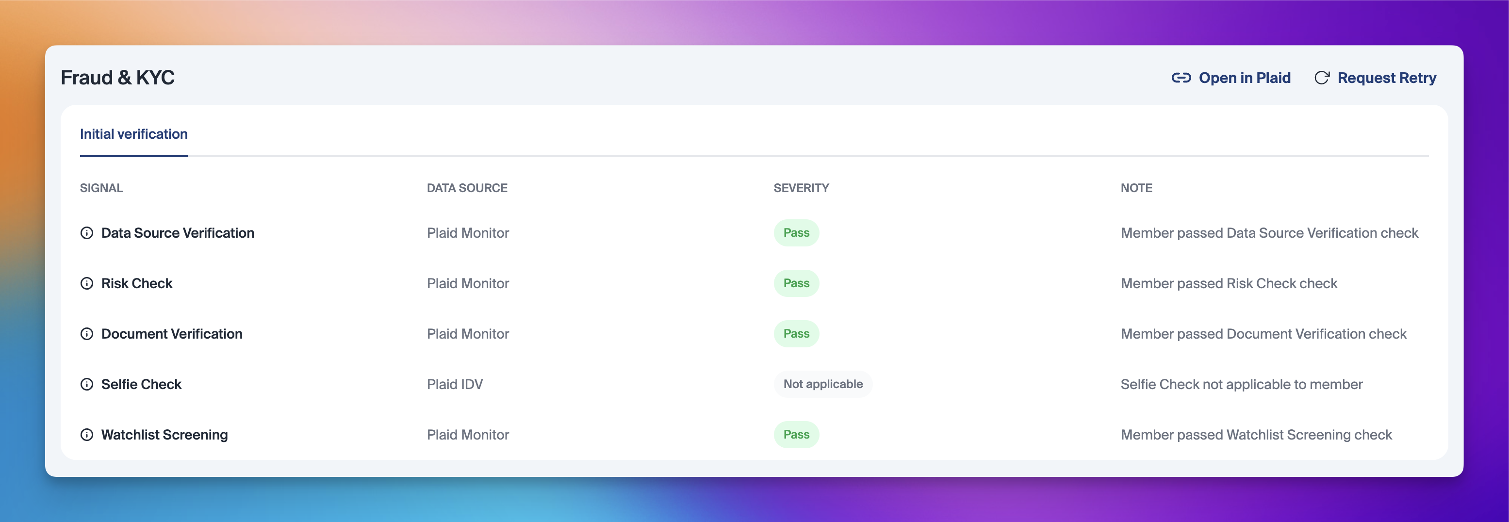 Retries initiated with just the "Watchlist Screening" step will not appear in the verification tabs and will instead be tracked in the activity trail.